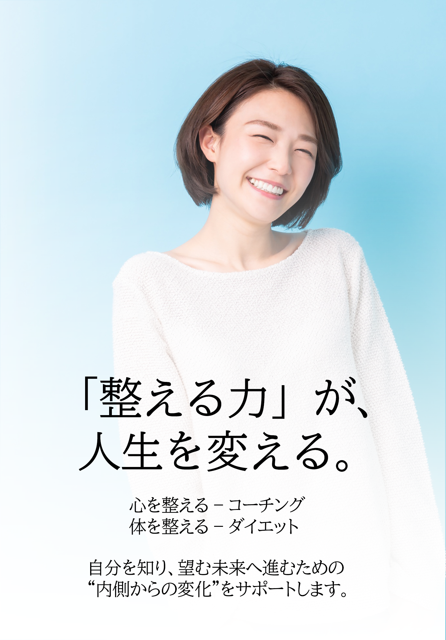 私たちは「体を整える – ダイエット」、「心を整える – コーチング」というアプローチで、自分を知り、望む未来へ進むための“内側からの変化”をサポートしています。